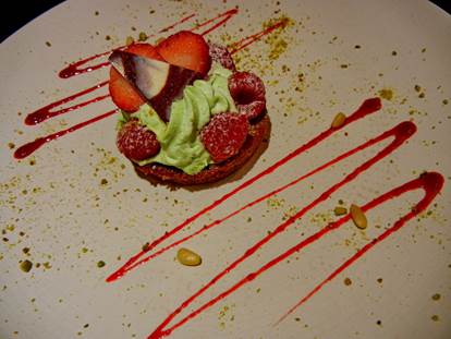 raspberry dessert and a chocolate dessert at Amore et Gelosia.