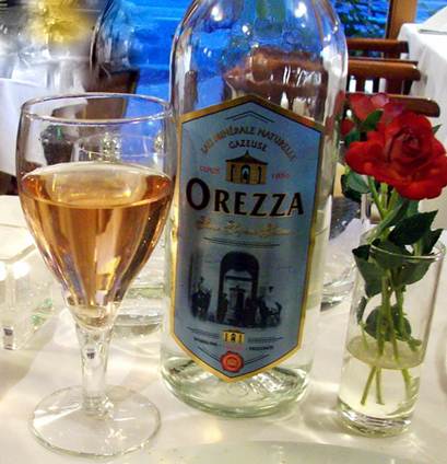 Dinner at L’Abri Cotier: Sparkling water and rosé wine from Corsica