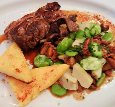 of lamb chunks with polenta, lima beans, chanterelle mushrooms, and more. An