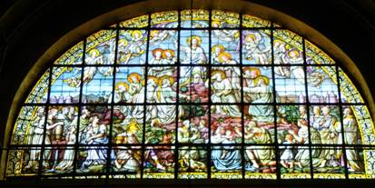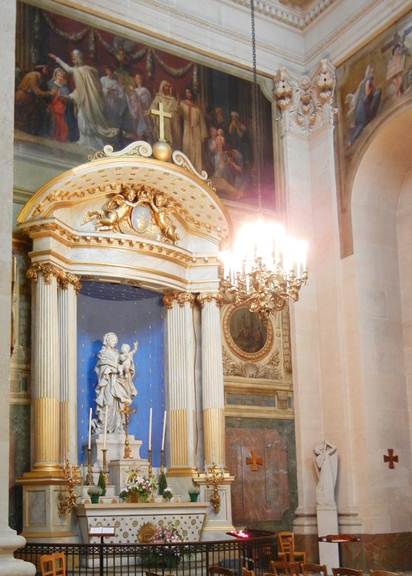 Cynthia wrote to me yesterday to ask about those “oldest restaurant in Paris” claims made by various places. Which one is truly the oldest? Like so many things in life, it depends. In this case, it depends on how you define “oldest restaurant in Paris.” Is a bistrot a restaurant? Yes, in my book it is. Does it matter if the restaurant was actually in Paris when it opened? What if the borders of Paris at the time it started up meant the restaurant was originally outside of Paris? I can’t decide about this question, so I choose to ignore it. Is a tavern a restaurant? Is a cabaret a restaurant? If the place serves real meals from a menu that has some choices, I think the answer is yes. If it is really just a place to drink and/or be entertained, the answer is no. If the tavern is the kind of place where boarders are served meals, but there is just one offering, only one choice, of main course, then I say no. That is just an inn or boarding house. Does it matter if the place has been continuously operating? What if there are gaps in time when the place was not a restaurant? I think that disqualifies it, because restaurants come and go. The thing to celebrate is continuous operation in a particular location. Even though some claim that La Colombe/La Reserve de Quasimodo is the “oldest bistrot,” I think it has not operated continuously as a restaurant, and so is disqualified for this designation. Le Procope, which opened in 1686, makes the claim of being the oldest restaurant in Paris, but it, too, has not operated continuously. It was, however, within the city of Paris when it first opened. La Petite Chaise, on the rue de Grenelle, has operated continuously, and I think that is very special. It was, however, outside of the borders of Paris, on the road leading to the village of Grenelle, when it first started up. The reason for that was the tax on wine within the city of Paris. That popularized the idea of places where you could go, just outside the city, and consume wine tax-free. At the Petite Chaise, the manager (Georges Rameau) decided it would be a good idea to offer meals to go with that wine, and by 1680, he was doing so. David Lebovitz agrees with me that La Petite Chaise is the oldest restaurant in Paris. Le Procope initially was a café that just offered a little something, like sorbet, to go with that coffee. I don’t think that counts. La Tour d’Argent also makes the claim of being the oldest restaurant. But it was not always in the same location, so that doesn’t count, in my opinion. However, it does date back to 1582. One of the reasons it had to change location at one point was that it was destroyed in the Revolution, I believe, since it catered to aristocrats. I think this means it also did not exist for some period of time. It is a good thing that the Revolution shut them down. To me, something isn’t right about a restaurant that caters only to aristocrats. Food should be democratic, and the current philosophy of La Tour d’Argent agrees with me on that, even though this distinguished resto may not have had that philosophy in the past. Some claim that Le Grand Vefour, the restaurant featured in the Woody Allen film, “Midnight in Paris,” is the oldest. But the Vefour web site claims that the resto only dates back to the 1780s. The first place to call itself a “restaurant” was owned by a guy named Boulanger. He used the word to describe his place in 1765. Perhaps the Académie Française should convene a panel of experts to decide which place is truly the oldest restaurant in Paris. Anyway, who cares? It is either La Tour d’Argent, Le Procope, or La Petite Chaise, but I say it is La Petite Chaise. Cynthia pointed out that I erroneously said that the trees in the Place Dauphine were plane trees (September 14, now corrected). They are actually red chestnut trees, planted to replace sickly old white chestnut trees that had to be removed this past year. Twenty-nine new trees were planted, at a cost of about 120,000 euros, according to www.evous.fr . When we walk through the Luxembourg Gardens at this time of year, Tom cannot resist collecting a few chestnuts off the ground. But yesterday, we walked instead on the rue Jacob. Still, on a Monday, most of the shops were closed. Tom asks, “Don’t they want to make any money?” Good question. At the end of the rue Jacob, we circled down to the boulevard Saint Germain, and took a detour to the Saint Thomas d’Aquin church. It was almost deserted inside, and the few others present were sightseers, like us. So I took some photos, but still did not use a flash. Then we moved on, to the south. We stopped in to visit the Conran store across from the Bon Marché department store. The Conran store is in a building that formerly housed part of Bon Marché. Conran is a British chain, and we think its managers and executives should be embarrassed about what they’re doing (with the exception of the housewares that they sell). The home furnishings we find to be grossly overpriced and very cheaply made: some style, and little substance. Then there are ridiculous decisions, like mis-labeling a fine old tribal oriental rug as a “kilim” and then pricing it at 6,000 euros! If the perpetrator of this mis-identification really thought it was a kilim, it wouldn’t be priced at 6,000 euros at all. Certain old oriental carpets might be worth that much, but this one was not. This was most definitely a low-pile, handmade, old Kazak carpet. A very nice rug, but worth something more like $800, and certainly no more than $2000. The Conran people don’t even know what it is, and they put a price on it that has no relation whatsoever to reality. There are plenty of French people who know their oriental rugs, and they must see this and think those Brits who run Conran are nuts. Incompetent nuts. We moved on to the other side of the street, to find the new window displays that feature great, cartoonish drawings of left bank 