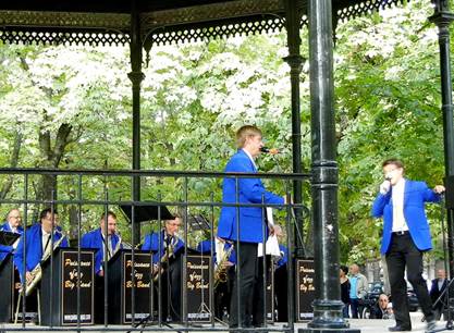 of the 18-piece Puissance Jazz Big Band on the Luxembourg Gardens’