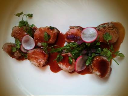 its side of finely puréed sweet potatoes, that was actually like a veloute or sauce (below).