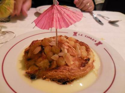 Tarte Berbère with crème anglaise. |