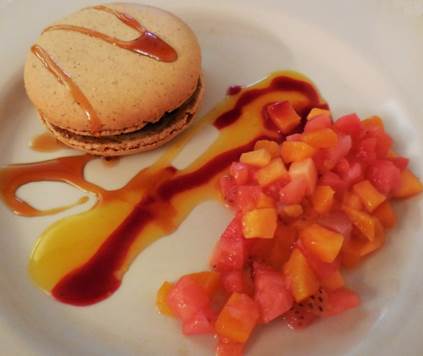 The menu at l’Alchimie changes regularly, but it seems that the chef, Eric Rogoff, always has some unique and creative way of serving foie gras. Last year, it was chocolate-encrusted foie gras. This year, it is a starter course called a panacotta de foie gras, pommes carémilisées, pain d'èpice. I swear those carmelized apples really seemed to be peaches, but whatever, the result was delightful. This could be a dessert instead of a starter course: rich, sweet, and wonderful. Turbot de pêche rôti à l' ail et au thym, pont-neuf de manioc was my main course. Turbot is a stronger tasting fish than the sea basses and dorade I’ve been eating lately, so it was a nice change of pace. What looks like little potato logs stacked in a criss-cross fashion (pont neuf) as the accompaniment to this turbot is actually a tropical tuber called manioc in French, or cassava in English. (When dried to a powdery/pearly extract, cassava is tapioca.) This is a very drought-tolerant plant that is native to South America (northern Brazil?). While we may not often see it on our plates, cassava is the third most prevalent source of carbohydrates in the tropics, after rice and corn. In developing countries, it is an extremely important food source. The largest producer of cassava is Nigeria. As popular as it is, cassava must be properly prepared, because it contains toxins such as cyanide. L’Alchimie’s chef’s mother was from Vietnam, and I think it is quite possible that she taught him how to properly prepare cassava. She did encourage him to become a chef. Tom’s starter course was a big plate of excellent beef carpaccio, so for his main course, he ordered the yummy homemade tagliatelle pasta with sun-dried tomatoes. He finally broke his lamb streak! Good for him. Tom’s dessert was a Macaron amande, coeur au beurre salé, tartare de fruits. The « fruits » turned out to be diced mangos. I was not able to help him with that delicious dessert; in fact, after my rich starter course, I could only eat a third of my manioc (cassava). After dinner, the evening was so beautiful that I put my laptop computer out on the balcony with me to check my email. Then I read on my Kindle for a while – the latest book is The Paris Lawyer by Sylvie Granotier. Its plot includes a woman from Gabon who is accused of poisoning her French husband with cyanide. I wonder if it was really the cassava? On va voir.