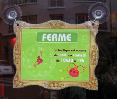 sign indicating the hours for the cute Pylones shop |