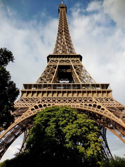 At last the profiteroles arrived, and we were graciously given an extra plate (without our asking) so we could share. Before dinner, we had a lovely walk around the Champ de Mars. We spent some time in the verdant parks on either side of the base of the tower. These green spaces and ponds are amazing peaceful, and yet so close to the teaming crowd under the tower. We were surprised to see a little turtle swimming with the carp and giant goldfish, and a white goose hanging out with the ducks. No ostriches in sight.