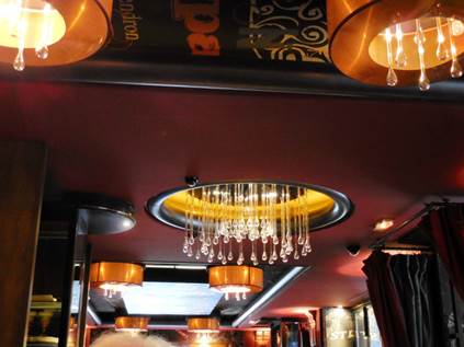 Gorgeous ceiling in the crowded Carmine Café.