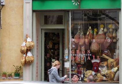 The crowd was thick along the Berge de Seine on the left bank. Sunday has been a big day on the riverbank for a long time, even before the Berges project was completed a little over a year ago. Even before the left bank Berge project became a reality, the City of Paris closed that highway to cars on Sundays and holidays, so that pedestrians and bicycles could rule the riverbank. Now, however, there are so many pedestrians on weekends that it is impractical and unsafe for bicyclists to ride through the center sections of the Berge project. Some of the bicyclists come upon the crowd innocently enough, because they start out way to the west, perhaps in the vicinity of the Eiffel Tower or even the Parc André Citroën. Riding east from there is easy, for a while. But shortly after you’d pass the Eiffel Tower and the Passerelle Debilly, you’d find yourselves pedaling through the former port for receiving gravel and sand and the like, destined for building and road projects in the city. The port there has not been very open to the Berge project. At each end, there are “do not enter” signs, but only at the east edge of the port is there a fence blocking the way. So bicyclists get “trapped” in there. Limber people with lightweight bikes generally find a way over the fence. But families with kids and those heavy Velib’ bikes find themselves in a bind. Hopefully, the City will force the port to remove this ridiculous and troublesome fence. Mean old port protectors . . . they must be trolls. We saw a family of three struggling with this situation as we walked down the ramp to the Seine, right across from the east end of the Musée du Quai Branly. The dad had boosted his 8- or 9-year-old son over the fence, was hoping to lift a bike up to him on the ramp to get it over the fence. I knew the bike was too heavy for that kid, and I thought about stopping and offering to help. My dilemma is that I’m plenty strong enough to lift that bike, but leaning forward and lifting that weight would mean a good chance of setting off one of my dreaded muscle spasms in my back. Similarly, I didn’t want Tom to do it because he’s had a herniated disk in his back. We both can lift plenty of weight, but we have to be so careful about how we do it. As we went on, I was hoping that some able-bodied young man would help the family. I turned to look back; that is exactly what happened. The kid and the young man were accepting the Velib’ bike from the dad’s and mom’s outstretched arms. Hooray! Too bad, trolls! Then I knew that the family would have no trouble getting the other two bikes as well as mom and dad over the fence. They’d have a minute or two of easy riding from there on, until they reached the crowded sections, beginning soon after the Pont de l’Alma. Hopefully, mom and dad would have enough sense to say they should all walk their bikes through the crowd. We noticed, however, a number of people who insisted on riding through the crowd, as insane as that was. I was incredulous when I heard them dinging their Velib’ bells at the throngs of pedestrians before them. “They’re nuts!” I thought. “Someone is going to get hurt.” By the time we reached the Pont Alexander III, Tom was tired and hungry. We stopped and sat at a terrasse table at Faust. Fortunately, the harried server took so long to get to us that we had time to realize that Faust no longer offers any nibblies or snacks with the drinks. We decided to leave before we’d ordered, and I was pleased that as soon as we stood up, a woman and her handicapped husband stood before us; she said, “merci, c’est gentil,” to me, assuming that we had seen that their need for a table was greater than ours. I actually hadn’t had the chance to notice that, but I was glad it worked out that way. At any rate, Tom had been able to rest his weary feet. We checked out the few other places near that bridge, but the one we liked (Rosa Bonheur, right on the water) also offered only drinks. Tom couldn’t get excited about tapas at one of the other places, and finally he said, “You know, it is so crowded here, that I think it would be better to go back up on the streets.” He was right! The Berges de Seine are so popular now that on a Sunday, the streets are a calmer place for pedestrians! Imagine that. What a transformation! So we walked up the steps and skirted around the chaotic Esplanade des Invalides, where various ball games were in full swing. We found the Place de Finlande to be an oddly quiet space in the middle of general chaos all around. We turned down the avenue de la Tour Maubourg, into the relative calm of the 7th arrondissement. While we passed a couple of service continu brasseries on the avenue, we decided that where we really wanted to be was La Terrasse, near the École Militaire and the Champ de Mars. So we walked along the charming rue Saint Dominique and then the tree-lined avenue Bosquet and voila! There we were, entering the comfortable brasserie called La Terrasse, with a terrific view of the École Militaire. Sitting on the terrasse at La Terrasse is to be confronted with traffic noise, including many city and tour buses. We like to be inside at La Terrasse, with the comfortable red-velvet upholstered chairs and adequate space around the black marble-topped tables. The head waiter shouted out “anywhere you like” to us, and so we took the table for two in front of the antique china cabinet that displays an attractive collection of old pewter and similar serving pieces. This was a very late lunch or very early dinner for us (6:30PM), so Tom ordered a club sandwich and I asked for a Niçoise salad. The food was good, and the place was so restful; we were grateful. The walk home from there was just right – just right.
