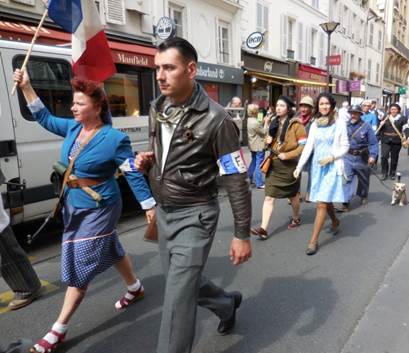 In spite of the perfectly English weather (i.e., miserable), we felt like celebrating again last night, because Tom had just finished an important part of the new edition of Back to Lake (to be published by W. W. Norton & Co. at the end of the year). So he’d asked me if we could go to La Table d’Hubert again. Bien sur! I made a reservation. The rain was just barely spitting when we left the apartment, so we opened the umbrellas and walked. We were going to be early, but I needed to do something about my shoe situation. My only real walking shoes for cold damp weather were in a state of being glued and clamped. I was wearing open-toed shoes, with socks, trying to avoid puddles to keep my socks dry. I’d already been scoping out short boots in various shoe stores. Le Monde et Nous, a boutique that I have been admiring at the beginning of the avenue Félix Faure, seems to have the best selection and prices for what I want. That was right en route to the restaurant, so we stopped. Within 10 minutes, I was buying the boots of choice: black leather, with thick vibram soles and elevated vibram heels – very practical for the weather we’ve been having. The boutique owner was pleased that I wanted to wear them and carry my old shoes out in a bag; that way, he kept the sturdy shoe box, which I was sure he would put to good use. His shop has lots of beautiful, lacy, colorful and comfortable tops, all made in Italy. These are tempting. We were only two or three minutes late when we arrived at the restaurant. Hubert was happy to see us, and thanked me for my little review in lafourchette.com. Or was it this journal that he saw? He said something about having the restaurant to ourselves, which made me think he’d read what I wrote about our recent experience at l’Alchimie. I’m too embarrassed to ask. At any rate, we did not have the restaurant to ourselves. Two other tables were occupied, both by younger couples. After a thoroughly enjoyable steak dinner followed by tarte tatin (thick apple pie with no top crust) and a scoop of rum raisin ice cream, we were ready to go back out into the cold damp for the 30-minute walk home. But once we were outside, we saw that the rain was coming down harder, and so we descended into the metro line 8 at its Balard end – four stops later, we’d be almost home, at the Commerce station. We still had a few blocks to walk from there. Puddles were growing, and becoming impossible to avoid. I was grateful to have the new boots. These boots are made for walking . . . in the rain! Sanibelians rarely get to wear warm boots like this in a cold rain; so please forgive my glee. At the apartment, we settled into our normal after-dinner routine of reading and listening to instrumental jazz (vocals interfere with the reading). Then I suddenly remembered that the sound-and-light show on the Paris City Hall was going to be live, on France 3 TV! We turned the TV on in time to catch the end of the Liberation of Paris documentary that preceded the sound-and-light show. And the show went on, in spite of the rain. There were people actually out sitting and standing in the rain to see it! (But TV cameras showed that they dispersed immediately, the moment the show ended. The wet parvis [plaza] in front of the Hôtel de Ville was suddenly empty. That parvis has recently been named for the Liberation de Paris, by the way.) During the show, images were projected over the entire façade of the Hôtel de Ville (City Hall). Some of the images were so realistic, you thought you were seeing bombers and parachutists; other colorful images danced and moved to the music. A couple dancers performed in front of spotlights that projected their shadows perfectly onto the building façade, much larger than life. (Here’s one spectator’s video of the show.) Good show! Speaking of the Liberation of Paris, the New York Times web site has the original August 25, 1944, article from its front page available at http://www.nytimes.com/learning/general/onthisday/big/0825.html#article And if you’d like to see more photographs of the Liberation, search for “Liberation de Paris” on YouTube. There are some fascinating images, including a piece about recently discovered photos taken 70 years ago.
