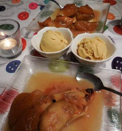 Tatin with rum raisin ice cream at La Table d’Hubert. Hubert made the tarte a flambée, right before our eyes.