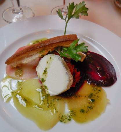 beets with goat cheese (above), and barbequed baby