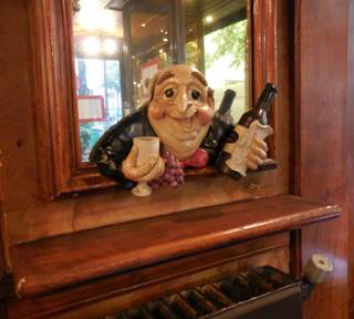 For my main course, I ordered the cannelloni au Brocciu, a popular specialty of the house. Tom had the côtelettes d’agneau au miel familial (little lamb chops with the family’s honey). Tom’s dish had an interesting potato-stuffed pastry and a bit of charcuterie that I think was a blood sausage. We shared each other’s food, delighting in every bite. Tom had the chestnut-flour flan for dessert—another Corsican specialty. It was absolutely delicious. What a fine dinner! I was grateful that the music played on the sound system was not American; instead, we heard real, authentic Corsican folk songs. Merci!