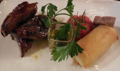 The cannelloni au Brocciu (above) and côtelettes d’agneau au miel familial (below).