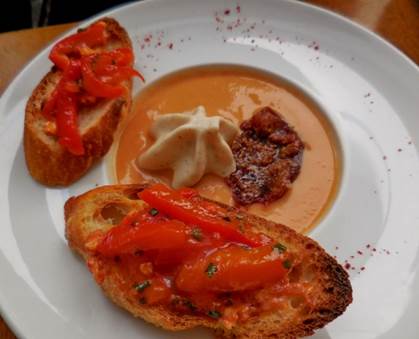 creamy gazpacho as his starter course.