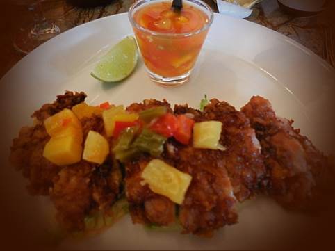 outstanding – I could swear it had coconut in it. The chicken was garnished with fresh fruit