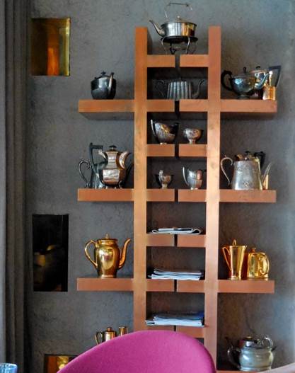 kettle collection on custom-built shelves.