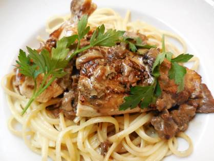 good by French standards, accompanied by potatoes au gratin and sautéed