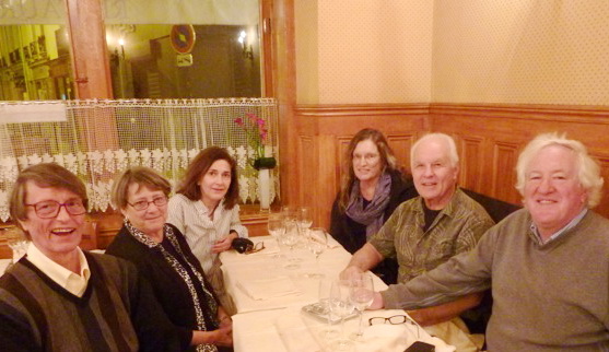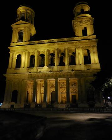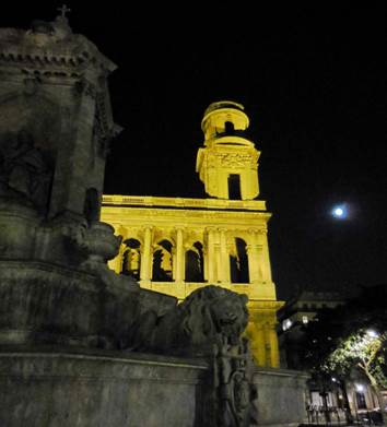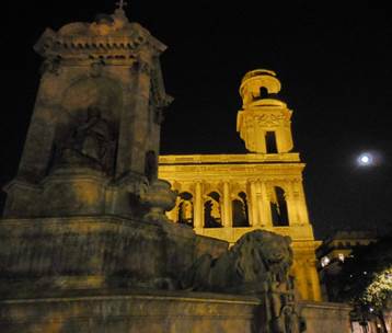 The Annual Sanibel East Dinner Six of us, all Sanibelians, gathered around a table at the oldest restaurant in Paris last night. La Petite Chaise calls itself the oldest restaurant in Paris; however, at its beginning, its location was outside of Paris. The other contender for the “oldest restaurant” claim is Le Procope. The problem with Le Procope’s claim is that it has not been in continuous operation since its beginning, as La Petite Chaise has been. As far as I’m concerned, it is an argument that does not need to be settled. Both places are the oldest, depending on how you ask the question. The fact that La Petite Chaise was outside of the city’s borders when it began operations in 1680 is central to its history. At the time, the City of Paris extracted a big tax on wine sales. Guinguettes just outside the city limits were started, so that Parisians could travel a short distance, and then drink cheaply. Very soon, food was offered to go with that wine, because we all know what happens when people drink on empty stomachs! Just because such drinking establishments were outside the city walls did not mean they were unregulated. For example, a royal edict stated that these wine merchants had to have metal grills or bars over their windows. These cast iron bars still exist today over the front window by the entrance to La Petite Chaise. They are listed on the historic register. The name of the resto was a corruption of the old French word “cheze,” which meant “casa,” and was used to refer to an isolated house or hamlet. This structure was a building that stood alone on what became the rue de Grenelle, but was once called the chemin de Garnelle. True to its country origins, the cuisine at La Petite Chaise is simple. This is not a place to go for really fancy, colorful, creative presentation of the food (like LePario). Instead, what you get are high-quality ingredients, prepared simply and well as hearty fare. Our conversation did not center on the food, so I can’t tell you much about everyone else’s courses. But I will say that my starter, the classic six escargots served sizzling hot in a ceramic dish with six concave depressions, was absolutely correct. The melted garlic-and-herb butter could not have been better. The veal steak, a quasi de veau, was tender, juicy, and flavorful, and the homemade tagliatelle pasta and creamy sauce were fine (but copious; I only ate part of the pasta). My dessert was a crème brûlée that was also absolutely correct. Tom had the same starter, but then followed up with an excellent main course of lamb chops and a superb dark chocolate cake with crème Anglaise for dessert. One sign of a good restaurant is the relative permanence of the staff. Most of the faces we see among the staff at La Petite Chaise are very familiar to us, because they’ve been working there for years. Tom always asks one of the servers about his vacation, because once, years ago, that server amused us with tales of his trip to Dubrovnic. Last night our friend Jim got one of the other longtime servers to start really talking and joking around with us. And our dinner conversation was lively. Jim is an American who has worked in France for many years, so he speaks French with utter fluency. His wife, Jackie, is French and speaks English well, although she says that she and Jim just speak French at home. Home for them is Neuilly, a leafy and near suburb of Paris; in the wintertime, they go to their new home on Sanibel Island. John and Linda are like us; their only real home now is on Sanibel. But they like to visit Paris every year. Often they rent an apartment; this year, they’re in a hotel just a few blocks north of La Petite Chaise. Our post-dinner conversation went on for quite a while. Late in the evening, we saw John and Linda off in a taxi, and then we walked with Jim and Jackie as far as the rue Saint Peres, where they veered to the north, to cross the Seine. They planned to walk back part of the way, then take the metro on to Neuilly. As we crossed the Place Saint Sulpice, the church and fountain looked particularly lovely in their night lights, with the silvery almost-full moon as well. A movie was supposed to be filming on our little street and the immediate environs from about 4PM to 10PM, but we never saw the crew members or actors. They must have started late, after we’d left for dinner. When we were returning at about 11:15, the last two technicians were just leaving the scene with the last few pieces of equipment. So we managed to miss that inconvenience; I’d been thinking that it might delay our return to our building. We have no idea what movie was being made; we only noticed the apologetic announcements, in tiny print, posted on the walls of buildings around us. We know why the director chose that little corner of Paris: it is as charming as a fairy tale.