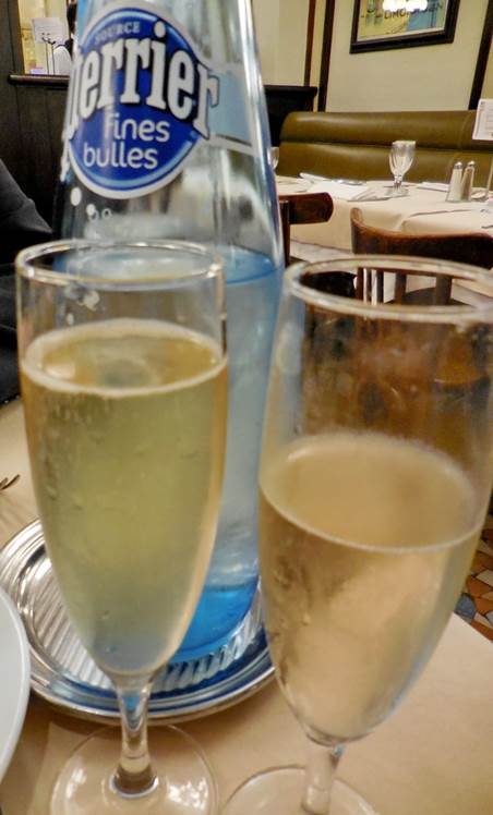 “C’est jolie,” said the taxi driver, as he pushed open the heavy door I had just unlocked with the door code. “C’est très jolie! C’est jolie.” I love to hear grown men use the word “pretty” with such sincerity and enthusiasm. (This driver was genuinely nice and interested in giving us the best possible service. Tom had tipped him well, at the beginning of our ride, because the driver had so amicably helped with moving the luggage from the porte cochère into his taxi. He then took the best, most efficient route over to the apartment in the 6th. He did not charge us for the baggage, as he certainly could have done.) He was the second taxi driver Tom had approached at about 3PM at the taxi stand on the boulevard de Grenelle. The first one did not want to go over to the 6th arrondissement, for some reason. Perhaps it was the end of his day, and he wanted to head in the opposite direction because that would be closer to home. Sunday dinner with the family can be a mid-afternoon affair, and one that you would not want to miss. Family is so important in France, and so is dinner. Put the two together on a Sunday (normally a day for not working), and you have a sacrosanct occasion. We weren’t sure what time we’d be ready to move, so we had not been able to arrange for the taxi ahead of time. Phoning for a taxi at the time you want one takes longer and costs more. We always have better luck with going out and finding one. Our routine for the move, once all is packed and the apartment cleaned, is for me to wait with the baggage in the porte cochère while Tom hunts for the taxi. This best done at a taxi stand, and the closest one that really has taxis in it is up on the boulevard. Besides, Tom had to go out to the pharmacy anyway; he might as well find a taxi, too. While I waited, the tall gentleman who stores his big motorcycle in the padlocked shed in the courtyard arrived. With superb efficiency, he opened the big double doors at each end of the porte cochère passage. He went back to his motorcycle, and as he was starting the engine, the thin and elegant Madame B., a well-known judge who lives in the building, had exited the elevator and entered the porte cochère. She was not pleased that a motorcycle was about to noisily pass by her so closely, inside her building! The tall gentleman simply nodded his helmeted head very slightly at her, and did not even pause. He was imposing himself, a sort of bespectacled James Bond type, and not easily intimidated. She left, and a moment later, he was padlocking his bike safely away, then shutting and bolting the big, heavy doors pack into place. He was in and out of there in less than 90 seconds. Along the side of the passageway, I’d been holding my breath; I felt like I had witnessed a near clash of the Titans. For this simple shed, I’m sure the tall motorcyclist pays a premium rent to the man who owns so many of the apartments in the building. The tall gentleman on the motorcycle does not live in the building, but rather someplace else nearby. The courtyard where the shed sits is also part of the evacuation plan for the restaurant behind our building, in case of fire. That’s good, because the main entrance to the restaurant is at the end of a long corridor – a potential disaster in the event of a fire that causes a human stampede. The fire exits to our courtyard are much closer to the dining areas. The night before, we’d dined in that big resto, Le Café Du Commerce. It seemed appropriate to eat there on the occasion of our last night in the 15th for this summer.