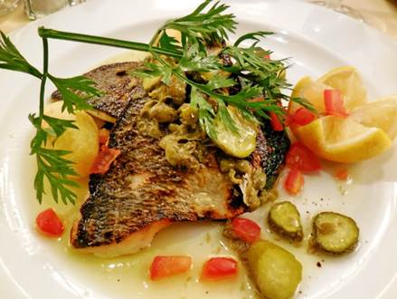 daurade at Le Café du Commerce (above), and steak and creme brulée (below). Tom also had some excellent fries with that