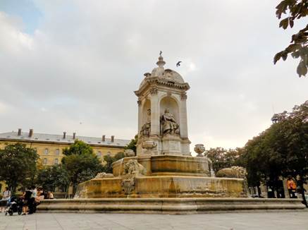 The fountain in the Place Saint Sulpice, flowing nicely and