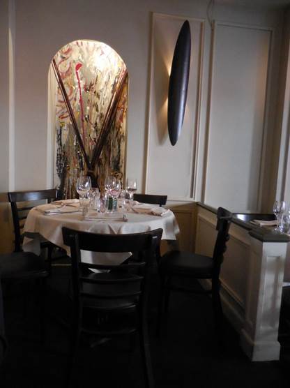 elegant dining room at Le Court Bouillon, on the rue du Theatre.