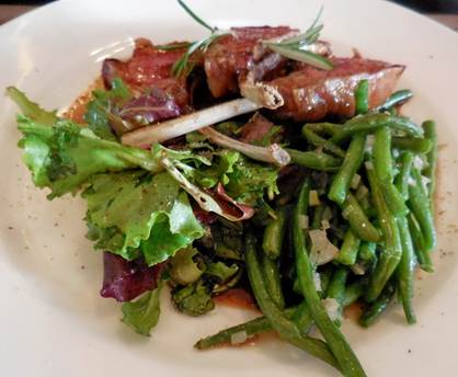 A day that starts with a parade is an auspicious day. The day was full of promise. Importantly, the weather was such that those young men and women in uniform would not be sweltering in the name of France all morning. The Bastille Day military parade is a drawn-out affair. The television coverage for it lasts from 9 to noon. By then, temperatures were in the upper 70s F. We saw the horses again – the very same ones we saw practicing with the Republican Guard’s cavalry on Monday. They were at the very beginning and near the end of the parade. The very end of the parade was the precision landing of the parachutists, right in front of the bleachers where the President and VIPs were seated. The parachutists were spectacular enough to temporarily divert attention from the First Lady of Mexico, who was sitting amongst the VIPs, wearing a skin-tight bright red lace dress and matching bright red lipstick, in stark contrast to her pale bottle-blonde hair. All the other women around her were quite conservatively dressed. I bet she felt strange. The sights I enjoy the most from the parade coverage are the beautiful views of Paris taken from the channel 2 helicopters. Sigh. After the parade and before the afternoon coverage of the Tour de France, we went for a two-hour walk that included some shopping. We were amazed at the large number of shops that were open on this national holiday. Ten years ago, there was almost nothing open on Bastille day. Times have changed. When we finished walking down the rue du Commerce, where the businesses seem to be very organized and coordinated, I expected to see far fewer shops open. That was true, except that the unique boutique owned by an Italian-French man at the top of the avenue Felix Faure was open. How nice! We went inside. I love the clothes there. Most are made in Italy, and many are one-of-a-kind. Some of them actually fit my large shoulders and chest, without ballooning around my middle. That is to say, the clothes are comfortable yet shapely. Many are quite lacy, and the colors are sublime. I was tired of wearing Chicos T-shirts, nice as they are, and I wanted something more feminine. I would have settled for a single blouse, but Tom got involved in selecting more things for me to try on before I left the fitting room. One of the items he selected was a dress – a gorgeous, gray-blue dress with crocheted lace sleeves, an embroidered top, and a flouncy, two-layered skirt. It fit like a dream. Tom didn’t quit. As I was about to pay for that dress and a lovely, lacy, two-layered blouse, he brought a handbag to my attention. It was red, soft, supple cowhide, and of course, it was made in Italy. I bought it, too. This sounds pricey, I know. But I bought the dress, blouse, and gorgeous leather handbag for a total of 123 euros. Not bad. I don’t know the name of the shop because it has no sign, or if there is a sign, it is subtle. I just know the place from walking past it so many times. Last year, I bought a pair of city boots there. And we know the place from the soft-spoken Italian-French gentleman who owns it. He has a sweet smile. Tom said that we probably made his day. Only a couple other shoppers stopped in during the time we were there. I’m not sure why this place isn’t mobbed on a day like yesterday. And why are there so many shoppers at the chain stores on the rue du Commerce, where the clothes are overpriced, cheaply made, and boring? Go figure. We continued our walk down the avenue Felix Faure to the rue de la Convention, and then up the rue Saint Charles, where the market stalls had just been removed for the day. Tom decided to buy a baguette, so after a brief stop in the bakery just off of avenue Emile Zola, we were home again. It was time to watch the day’s stage of the Tour de France. The Tour was finally in the foothills of the Pyrenees, and it got more exciting as the afternoon went on. At the end, Christopher Froome seemed to have a lock on the yellow jersey. Good for him! The evening’s dinner reservation had been a little difficult to procure. About a week ago, I’d first reserved a table at Le Granite, a longtime favorite, via Lafourchette.com. Then I received an email saying that, unhappily, the restaurant was unable to honor the reservation. But I still got 100 points for having made it. I’m sure Le Granite simply forgot to tell Lafourchette.com that it would be closed for Bastille Day. I went back online and reserved a table at Alchimie, another favorite place, for the holiday dinner. Once again, I got an email saying that unhappily the restaurant was unable to honor the reservation. Eric at Alchimie must have also forgotten to register his holiday closing with Lafourchette. Another hundred points were tossed into my account. The third time was a charm. We got a reservation at Le Court Bouillon and it was honored! Happily! Even with the 20 percent discount offered on Lafourchette.com, Le Court Bouillon is pricey. I think it was our most expensive dinner yet this month. But it was fine. Le Court Bouillon is elegantly decorated and lighted. This was the perfect opportunity to wear my new dress. And so I did. We began dinner by sharing a slice of terrine de foie gras – smooth, velvety, and delicious! Tom had the excellent, tender lamb chops in a dark, flavorful reduction sauce, accompanied by superbly cooked and seasoned green beans. My dish was a filet of dorade royale, covered by a single layer of paper-thin slices of small potatoes. On top of that was a nice little salad. We shared a luscious moelleux au chocolat for dessert. A divine dinner like that would have been a great ending to the day, but there was more to come: the grand classical concert followed by the fireworks at the Eiffel Tower. We don’t do crowds anymore, so we watched the entire spectacle on TV. You can see much more of it that way. Channel 2 also gave us more great aerial views of Paris, at sunset, and after nightfall. The entire show – conce