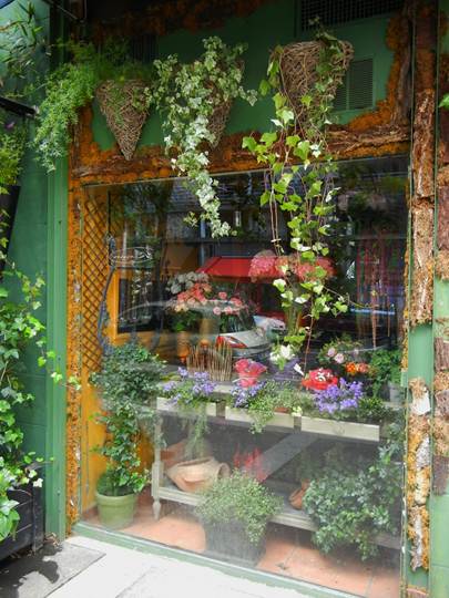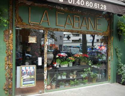 Cabane, a florist shop on the rue Balard, where the windows are trimmed in