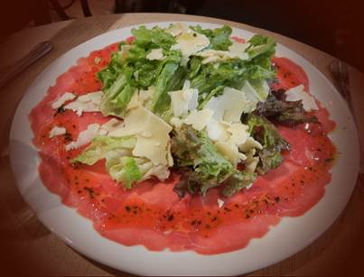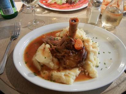 lamb shank special at Le Commerce Café (above), and the beef Carpaccio