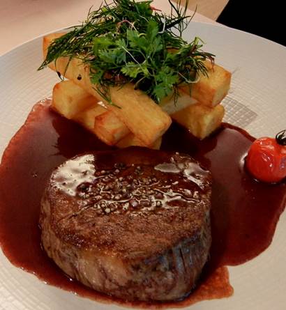 main course at L’Épopée was simply good, not great. Tom’s, however, was great. He ordered the filet de boeuf, which arrived at the table piping hot, with