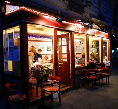 Don’t believe everything you read. Or at least, when it comes to restaurant reviews, take them with a grain of salt. It isn’t that the reviewers are wrong or misleading, but sometimes they may overlook something that they don’t think is important, but it does matter to you. In both the French-language professional reviews found in the press and the customer reviews found on the internet, one often sees mention of the “rapport” between price and quality. This is more than just a nicer way of saying that you get what you pay for in restaurants. It is an acknowledgement that there are times when we want to pay more and to get something better, and times when we want to pay less and realize that our expectations must be moderated. It is a very reasonable concept, and one that I do appreciate. On the avenue Félix Faure, not long ago, we passed by a restaurant called Mare-Monte that had proudly plastered much of their front window surface with laminated copies of glowing reviews in the French press. We tried to get a table that first night that we noticed the place, but it was booked up. It is a small restaurant, run by a Greek-French couple. I did get their card, and entered their phone number in my contacts list on my smartphone. But when we started our walk last evening, we were early enough that we thought we’d just walk by the place, check it out again, and make a reservation if we felt like it at the time. And so we did. I told Tom he had to go in and make the reservation because 1) I’d spoken much more French yesterday than he had, because I’d gone shopping at the open market on the rue Saint Charles, and 2) he looked so good in his black blazer that surely nobody would be able to say no, no table for you, sorry. And so Madame responded nicely to him, and promised him a cute little table right in the front window, just to the right of the door. It was situated just below some of those laminated press reviews plastered across the window. After walking for 40 minutes or so, we returned and claimed our spot at 8PM. Seafood is Mare-Monte’s specialty, and seafood is what this bistro does superbly well. That is really all that matters, and it is remarkable to offer such wonderful fish at such a great price. Just don’t expect anything much of the garnitures, such as the green beans and the fries – both were quite blah. But the fish, oh my – daurade is on the regular menu at Mare-Monte, but daurade royale was on the blackboard as a daily special – for only 16 euros. That may not sound inexpensive to you, but for a really good daurade royale, that is a great price. Good rapport between price and quality. The fish was served whole, so you can see what this creature from the Mediterranean looks like. It was expertly cooked, absolutely perfectly, and had a nice sprinkle of sea salt and just a bit of olive oil on it. I had great fun removing the bones because I’m getting to be very good at this. Practice makes perfect. And I had even more fun savoring each bite of daurade royale. The web site www.pecunia.fr describes this fine