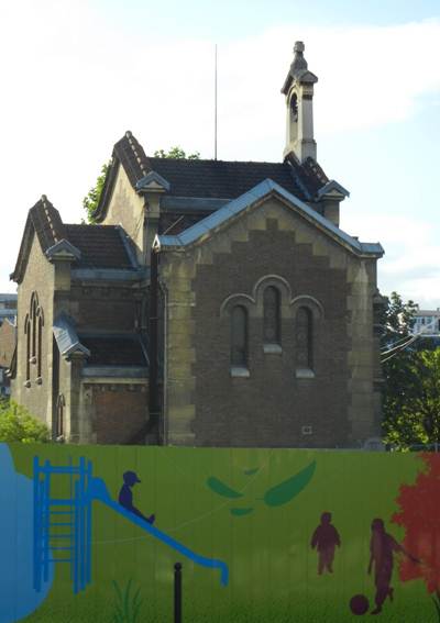 behind the construction fence on the site of the former Boucicaut hospital complex,