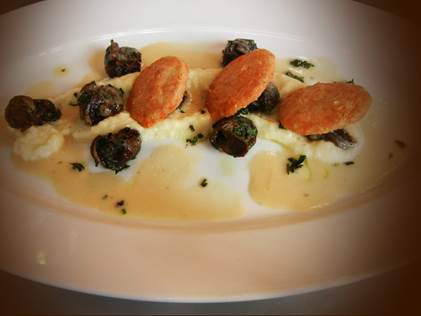 room. But we didn’t know. I orderd the escargots au beurre d’algues, polenta