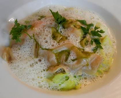 time, the main courses arrived: ravioles de langoustines, embeurée de