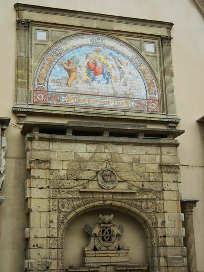 After Tom returned from having his hair cut by the North-African-French guys at Look Coiffure, we headed for the metro station at Emile Zola. It was time to go greet Dan (Tom’s son), and our granddaughters, Olivia and Sarah. We had two strange encounters just in the short distance between the apartment and the metro station. Ahead of us, I noticed one of the Red Cross or Doctors Without Borders volunteers who was soliciting donations. This is not unusual; we often see these fundraising volunteers. They are not allowed to solicit donations from foreigners, so my usual response is to politely respond to their greetings by smiling and saying, “Bonjour,” but then I add “je suis Americaine” That normally results in their withdrawing politely, with a smile, and wishing me a good day. But this volunteer that I saw ahead of us yesterday was not being polite. He appeared to be angry with a woman who just declined to speak with him. I could see the anger in his face, and his lips seemed to be forming harsh words, which I could not yet hear because we were still too far away. But a moment later, when we were closer, he addressed us. Tom explained that he was a tourist. We kept walking. To our backs, the volunteer called Tom a stupid beast (my French is good enough to understand these insults). I made the mistake of telling Tom what the guy had said. Tom stopped, anger flashing in his eyes. For a moment I thought he was going to turn back and tell the guy off. But I said, “No, remember he’s nuts – you saw how he was speaking to the woman just before he addressed us.” Tom agreed. We went down the steps into the Émile Zola metro station. When we reached the platform, there were only two other people there: a woman, who was staying close to the entrance, and a man a bit farther along the platform who was making strange, loud whistling noises and kicking a vending machine with such violence that the sound boomed through the space. A young man had joined us on the platform. We moved to position ourselves between this normal young man and the normal young woman. We normal people were almost huddled up at the beginning of the platform. Safety in numbers, we seemed to be thinking. Soon, a few other people joined us, and the train arrived. We got on the first car, up near the driver. But we didn’t need to be concerned because the metro was packed with people. Besides, the crazy violent guy got on a separate car, and in this Paris metro, one cannot move from car to car. That’s life in the city. When there are this many people around, you are going to encounter the fringe elements. But all was normal and well when we left the metro at the Mabillon station, and walked the short distance to the apartment in the 6th. There we found that Dan and the girls had just arrived, and Ron and Elisabeth were showing them around the apartment. When we had things situated and the girls had collapsed into a nap in the middle room, Dan and I went out to the new Carrefour City on the rue de Vaugirard and the rue Jean Bart. Dan bought basic starter groceries. Ron and Tom stayed back at the apartment as the girls slept, and went over Ron’s rhymed translation of the Rimbaud poem that has recently been etched onto the long wall of the former seminary (now Finance Ministry offices) along the rue Férou. Tom gave Ron an A- for his efforts. I was surprised he gave him a grade at all. “I thought you were tired of, and retired from, grading papers,” I said. We got the girls to wake up and get ready to go for a very late lunch/early dinner (“linner”), and a walk. Tom remembered that one can dine anytime, even at 3PM (the strange time that is too late for lunch and too early for dinner), even at 3AM (all through the night) at the Café Mondrian at the corner of the rue de Seine and the boulevard Saint Germain. Olivia and I entered first; as soon as the three men working in the Mondrian saw us, there were bright smiles and greetings. Going about Paris with two charming 11-year-olds is different from going about Paris as a couple of aging adults. It makes sense. These servers are all of an age that they probably have kids, and they love to see kids come into the brasserie. Especially polite kids who say “bonjour, monsieur” even though they’re English speakers. I said bonjour and asked if we could please have a table for five. We were given our choice of tables. We selected a booth. The girls were great at saying “merci” a lot as things were delivered to the table: hot chocolate topped with whipped cream, coca cola in a bottle, with a glass and ice on the side, a big plate of fries, two different kinds of crepes (one was stuffed with chocolate), French onion soup (mostly for Tom and me), a bottle of San Pellegrino sparkling water, and a grilled ham and cheese with fries for Dan. The charmed server drew a cartoon of himself and signed it for the girls. After consuming much of the food, the girls were finally awake enough that they were excited about the possibilities – all the places that we could walk! In Paris! Tom showed them the quaint rue de Furstemberg and its fountain. We held their hands and walked through Flamant, a decorating/home store that we like so much. We like the space that it is in, not so much the store and its overpriced merchandise. In this commercial space, there is a preserved piece of the original wall of the Chapel of the Virgin that was once part of the old Abbey at Saint Germain des Prés. Here’s an explanation of the chapel ruins from the oldandsold.com web site: Gathered together in the small park which opens from a corner of the church are fragments of the great chapel to the Virgin, the chef-d'oeuvre of Pierre de Montereau, a chapel resembling in style and disposition his existing monument, the Sainte-Chapelle. A particularly handsome fragment is also displayed in the garden of the Cluny Museum. From this debris, constituting gargoyles, balustrades, columns, and orn