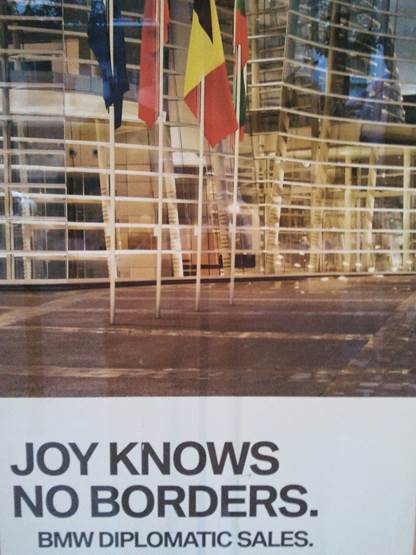 in English in the BMW dealership window, on the avenue Emile Zola. This is for my mom, Joy.
