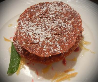 him to taste the buttery, heavenly potatoes. Tom’s dessert was a croustillant