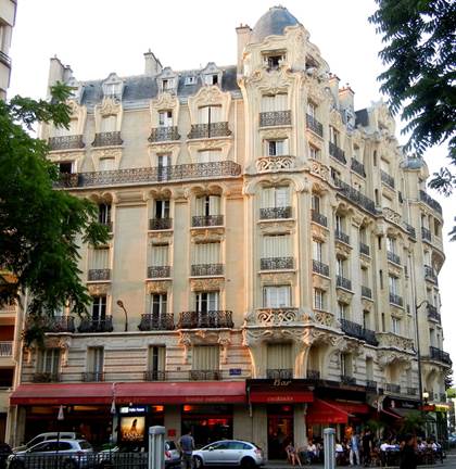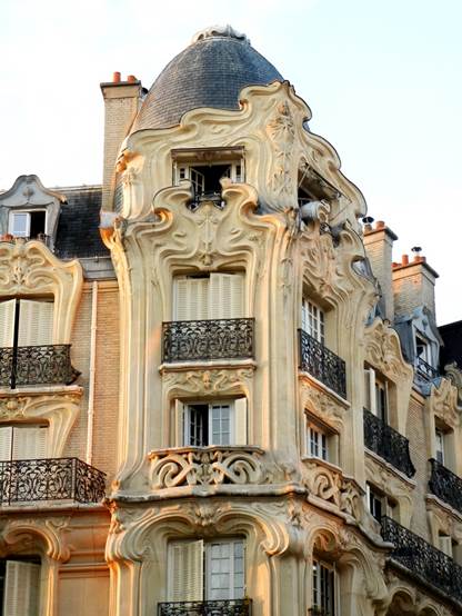 example of Parisian Art Nouveau architecture, with its exuberant mansard and
