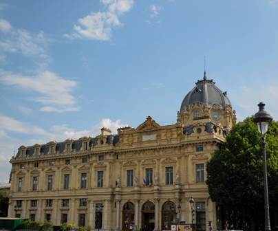 the front [standing for “Republique Française”], and double, wooden entry doors. And the name remains changed in this