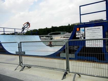 some more, pausing briefly to watch some BMX bike stunts on a ramp installed