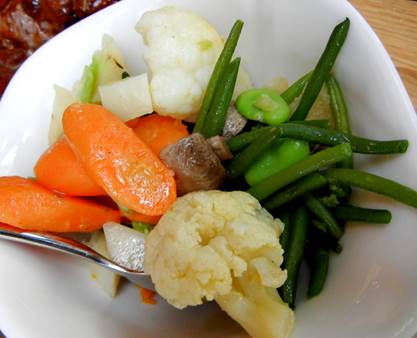 There was also a side dish of Axuria’s delicious vegetables. The only thing on Tom’s plate was a pile of