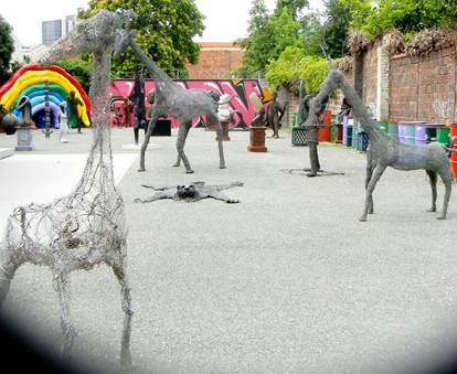 and funny art in a fenced-off vacant lot in Saint-Ouen.
