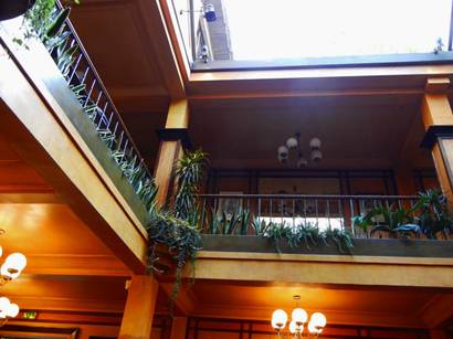 up through the opening created by the retractable glass roof. The restaurant was originally a fabric