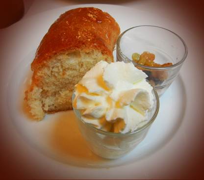 au rhum in Paris. It includes rum-soaked raisins (gold and