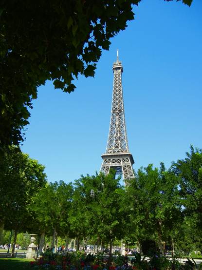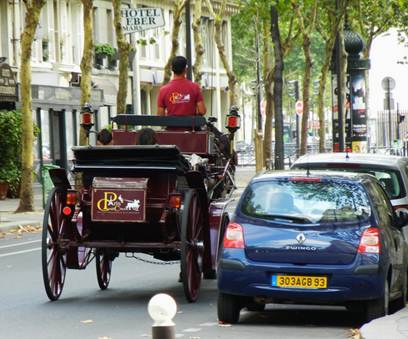Work at the Beaugrenelle construction site was in full swing on Thursday evening. The automobile traffic was completely closed off at the end of rue Linois, and even on one side of the busy Quai André Citroën. But we pedestrians were allowed to walk through the site, on our designated, mostly covered, fenced-in path. The occasion for the total blockage was that the structure for the new overhead walkway had arrived, and a crew was working late to begin to lift it into place. The structure is rounded, and made of tubular steel with a white coating. We could see the rounded openings in the new concrete walls on each side of rue Linois, where the pedestrian walkway will connect. It was interesting to see the work being done, but impossible to capture on the camera. Without the car traffic, that normally busy spot was surprisingly quiet. We finished crossing the quai, and then half of the Seine, on the Pont de Grenelle. When the Statue of Liberty was on our left, we turned to the right to begin our stroll through the leafy Allée des Cygnes, on the long, narrow Île aux Cygnes, down the middle of the Seine. At the end, just before we walked up the steps to the Pont de Bir-Hakeim, a dark skinned bride in a beautiful white gown and veil was posing with her dark and handsome groom for two photographers. We climbed the steps. On the romantic bridge with hanging lamps, on the other side of the street, a long, white limosine waited. A few more dark, handsome men in tuxedos also waited. We were still musing about all this beautiful black-and-white imagery, and about darker things that we passed by and through, so we missed our turn on the rue Saint Charles, and walked down the boulevard de Grenelle to the rue Violet instead. When we were just about home, we decided to dine at the Café du Commerce, which is the closest restaurant to our apartment. The maître d’hotel, servers, and head waiters at the restaurant also dress in black and white, or in very dark gray suits, white shirts, and ties. They are as handsome as the restaurant, which is very. The head waiter gave us the French menus, but asked if we wanted English. We said merci, non, and he seemed to understand why. Tom ordered the daily special, a thick slice of leg of lamb, and I ordered the fish special, an entire roasted bass. For dessert, we simply had to have the incomparable baba au rhum that the Café du Commerce does so well. It was a very good dinner. Toward the end of it, the head waiter wanted to engage us in some English conversation. We obliged. He asked me if I knew about the history of the restaurant. I said yes, it was originally a fabric store, right? He was pleased. He asked how long ago we first dined there. 1998, we answered. He said it has been the same owner all that time (which is not what we’d thought, but the change was probably in managers, not ownership). He proudly proclaimed that everything there is made fresh; they do not use frozen and pre-prepared meals that come in plastic bags and are heated in boiling water. Yikes! I didn’t know Parisian restaurants were so pervasively resorting to such shortcuts! He asked us to wait for a moment. He disappeared, and then reappeared with an attractive, big, three-panel brochure printed in color on heavy cream-colored stock. It described the history and background of the restaurant, in both French and English. I glanced quickly through some of the English. It was excellent, and I told him so. He was pleased to hear that, because he is ashamed of the English menu that the restaurant uses. He showed me the English menu. I had to agree; the English menu was not good at all. But I assured him that whoever did the English translation in the brochure did a very fine job. He told me to keep the lovely brochure, and so I did. We were a bit amused to see that it promotes the restaurant’s “terrasse.” There is no “terrasse” for dining at the Café du Commerce. Well, the restaurant tried to make one, on the top of part of the ground floor that extends beyond the main part of the building. This “terrasse” abuts the courtyard behind “our” apartment building. In fact, when we look down from our kitchen or bathroom windows, it is what we see, through the leaves and branches of the ailanthus (giant stink tree) that grows in the courtyard. The shade of the terrasse that the brochure refers to is the shade of the stink tree. From our table in the restaurant, we could see a few tips of branches of the stink tree because the restaurant also has a nifty retractable glass roof. We remember that our friend who owns the apartment had told us that the restaurant had wanted to use the “terrasse” for dining, but the owners of the apartments said no, no, no. Somehow, the apartment syndicate has control over the courtyard, and the one-story section of the restaurant that occupies that side of the courtyard. (Indeed, that piece of the restaurant is shown on the fire evacuation plan posted in the porte cochere of “our” building.) Mr. Billon, in particular, who owns a controlling interest in this building (because he owns several apartments, or he and his wife do), must have been instrumental in squelching the restaurant’s terrasse plans. So now it is just a space where the servers can go outside for a break, or a smoke. While we do enjoy the restaurant, we don’t really want diners out there on the “terrasse.” That would create noise that would disturb us. The guardienne for our building, Maria, has a kitchen garden growing down in the far end of the courtyard, where we don’t really see it. How nice for her and her family; they have such a small space to live in. The courtyard space is much needed and used by them. Maria’s and Manuel’s two daughters are grown up and married now. But they, their husbands, and the grandbabies come around often. The family is getting bigger, not smaller. In some buildings, such a courtyard would be common space used by all the res