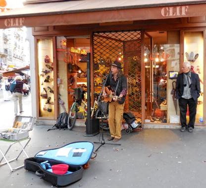had time to enjoy some street entertainment by the singer George Kettel (aka Gerd George Kettel, or Gee Gee Kettel), who’d been given the corner at the rue de Buci and rue Mazarine for the