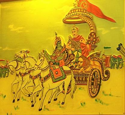 depicts scenes from Hindu scriptures and tales. There is no